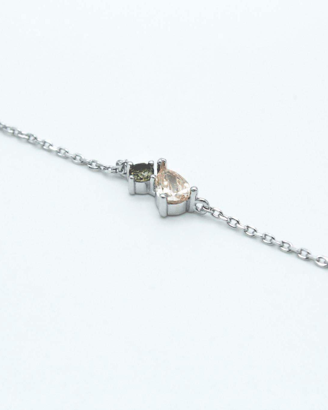 This fine and elegant bracelet is crowned with two colored zircons. The Gretel bracelet will be your next obsession. Made of 925 Sterling Silver and finished in rhodium